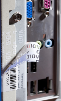 An example of an applied VOID label and then partially removed. Note the remaining white ‘VOID’ if label removal is attempted.
